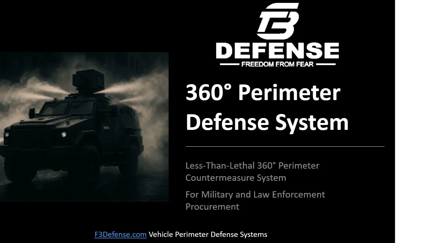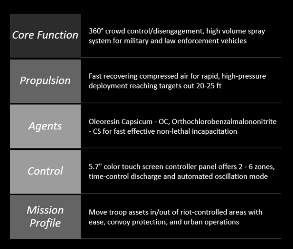 Less-Than-Lethal 360° Perimeter Countermeasure System for Military and Law Enforcement Procurement.